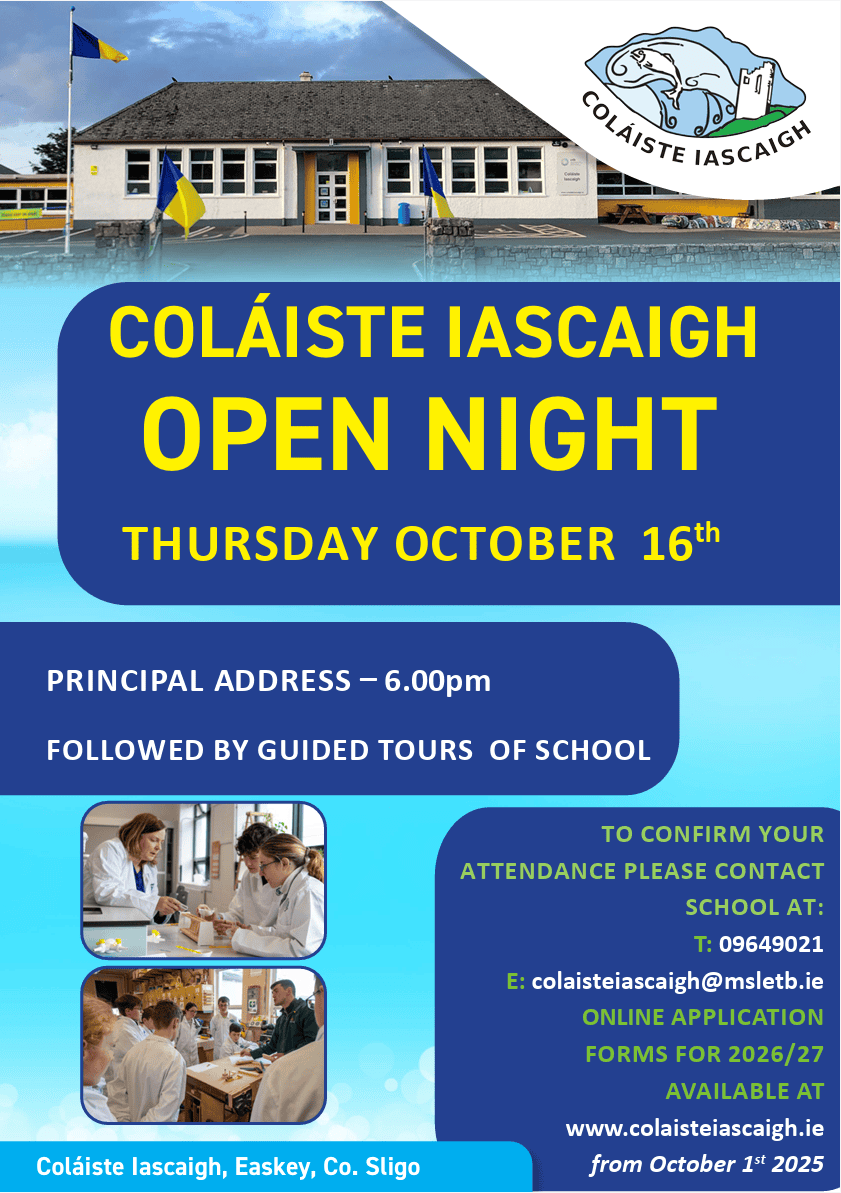 We believe that the spirit of Coláiste Iascaigh lies in our commitment to help our students to realise their academic, moral and social potential.”